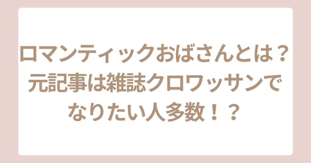 ロマンティックおばさんとは?元記事は雑誌クロワッサンでなりたい人多数!?